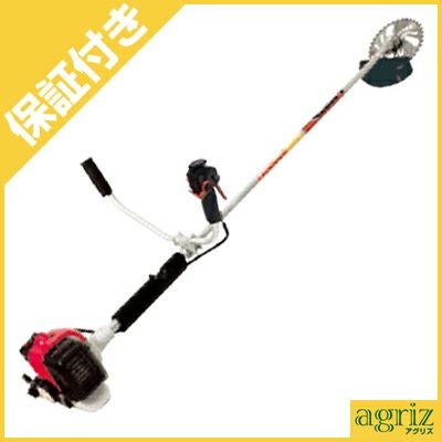 | 軽量コンパクトな20㏄クラスながら21㏄エンジン搭載でハイパワー。使いやすくワンランク上のパワーを発揮する丸山の軽量刈払機。 軽量かつ前後バランスに優れるので、取り回しがしやすく畔の草刈りに威力を発揮します。 エンジンは従来より好評の4流掃気シリンダー採用エンジン。混合気の流れをスムーズにすることで、燃焼効率が良くなり燃費性能とパワーを向上させています。 このクラスでは珍しい、2ピストンリング式を採用しているので摩耗にも強く、耐久性も十分。また、マフラーも触媒レスとすることで、安定した性能を発揮します。 エンジンの始動にはコイルダンパー式マジカルスタートを採用。始動時のゴツゴツ感を抑え、滑らかにリコイルロープを引くことができるので、エンジン始動に自信のない方や女性でも楽にエンジン始動ができます。 スプリング式防振シャフトとハンドル防振、ファンケース一体防振の3つの防振機能で刈払機全体の振動を低減、作業者の負担を減らし作業性も向上します。 スロットルレバーは安全でシンプルなコントロールトリガーレバーを採用。 コントロールレバーで任意の回転の高さを固定でき、トリガーレバーから手を離すと自動でアイドリングに戻ります。ストップスイッチも手元に設置されているので緊急時も素早くエンジンを停止可能です。 ハンドルは無理のない姿勢で振り回し操作が楽な両手ハンドルタイプ。左右非対称に加え、左ハンドルが刈刃側に8度オフセットされているので、振り幅が大きくとれ、効率よく草刈作業が行なえます。起伏の緩やかなところで使う方にお勧めです。 230mmの高級チップソーが標準で付いてきます。 |