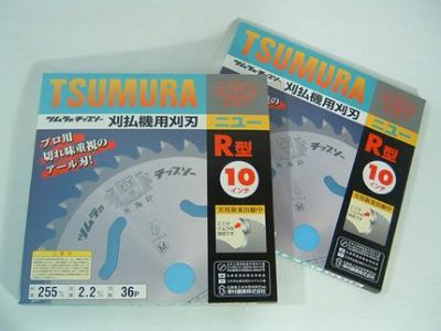 ツムラチップソーの原点となったR型チップソー!ツムラの技術が光るR形状のチップでシャープな切れ味が魅力の草刈刃。低速回転でも非常に鋭く刈込みが速い。
