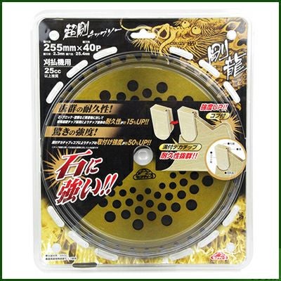 | ●石、ブロック、壁際など障害物が多い所でも抜群の耐久性を発揮します。 ●特殊超硬チップ採用により、チップ自体の耐久性が約15パーセント向上しました(同メーカースタンダードタイプ比)。 ●溝付デカチップ+コブ付によりチップの取り付け強度が約50パーセント向上しました(同メーカースタンダードタイプ比)。 |