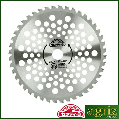 | ●摩擦の少ないスムーズな切断が可能です。 ●台金窓を設け強度を保ちながら、軽量化しました。 ●チップは斜め埋め込みで、飛びにくく作業者に安全です。 ●雑草刈・笹刈・小枝刈に最適です。 ●JIS規格品です。 |