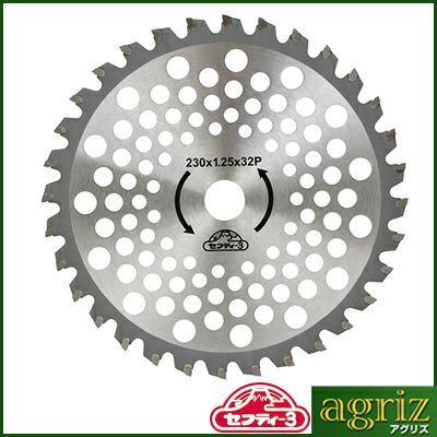 衝撃に強くチップが飛びにくい大型チップの草刈りチップソーです。 セフティ-3 草刈りチップソー 大型チップ 230mmx32P