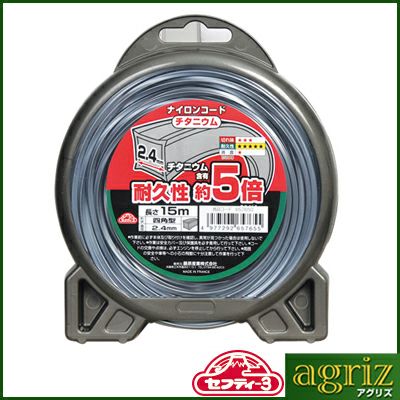 チタニウム含有で耐久性が約5倍(当社比)になりました。 セフティ-3 ナイロンコード チタニウム 2.4MMX15M □型