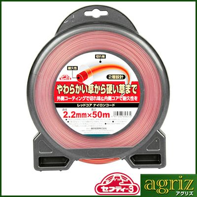 やわらかい草から硬い草まで対応したナイロンコードです。 セフティ-3 ナイロンコード レッドコア マル2.2x50m