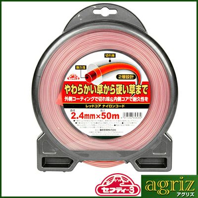 やわらかい草から硬い草まで対応したナイロンコードです。 セフティ-3 ナイロンコード レッドコア マル2.4x50m