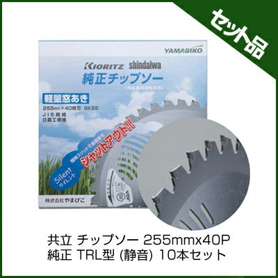 | セット内容 共立 チップソー 255mmx40P 純正 TRL型 (静音)×10枚 軽量窓あきタイプの共立純正チップソー!特殊スリットを入れることで不快な金属音を低減。外面交互アサリ研磨で切粉のハケが良くさまざまな用途にご使用いただけます。高品質・高耐久チップを斜めに埋め込み、通常2倍以上のロー付け強度で耐久性もアップした高品質なチップソーです。 |