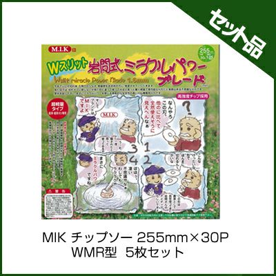 | セット内容 MIK チップソー 255mm×30P WMR型×5枚 ●新開発Wスリットの効果とは・・・ 石礫・硬質異物と超硬刃先との接触時の衝撃を吸収する為の新たな本体形状の工夫です。スリットが一箇所から2箇所のWスリットになって衝撃吸収力が大幅に向上しています。 ●耐久性向上 本体をWスリット形状に変更しました。 ●異物飛散の減少 刃高を1.6mmにしています。 ●切れ味向上、軽量化 本体厚みを1.05mmにしました。 【用途】 畦草及び密生地等での雑草刈り専用(立木は切れません) ご注意:必ず低速回転で、ご使用ください。 【特徴】 ●低速回転使用でのソフトで軽快な切れ味・密生地での振り抜けの良さ飛び石の少なさ。燃費の良さ等・現行岩間式WM型の切れ味の良さの特徴を一段と向上させ、さらに 軽量化も図っているチップソー刈刃です。 ●本体厚みは1.05mmとし超軽量化しています。 刃高は、1.6mmにしました。 ●さらに使用中の石礫等硬質異物と刃先の接触による衝撃をWスリット効果で吸収して刃先の欠ける現象を大幅に改善したチップソー刈刃です。 ご注意:「それでも保護眼鏡は必ず着用して下さい。」 ●長時間の雑草刈りが出来る耐久性・経済性を持っているので使い捨てでも惜しくないチップソー刈刃です。しかも簡単に目立ても可能です。 |