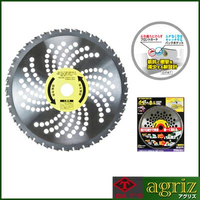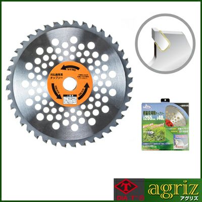チップは斜め埋め込みにすることで従来品の3倍以上のロー付け強度をアップ。刃型は切れ味の良さと耐久性のバランスに優れた形状であらゆる雑草に使えます。