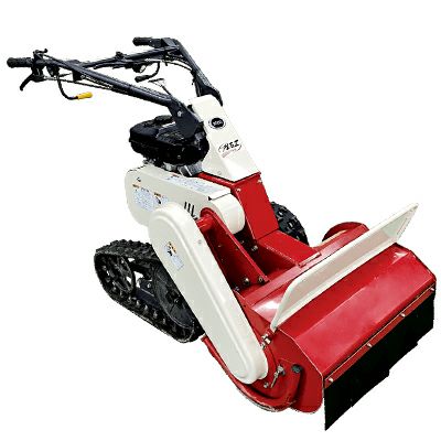 | ミニだけどパワフル!湿田や軟弱地、傾斜地に強いクローラータイプのハンマーナイフモアです。 取り回しの良い刈幅55cmクラスで、大型クラスに比べて車体重量が軽いので、傾斜地や湿田にも強く、女性でも操作が簡単です。 刈取り部にはフリーナイフを30枚装備、刈り取った雑草を細かく粉砕するので刈あとがきれいです。 ナイフはピン一括支持方式を採用しており、従来のナイフを一組ずつボルト・ナットで固定する方式に比べてナイフの交換作業が簡単になりました。 また、ハンドルは上下に任意(ノブナット締付けによる有段階)、左右に各2段階で調節で、作業者の体格や作業場所の状況にあわせて調整いただけます。 刈り高さの調整は、地面の凸凹に追従するフリー位置と、3段階の固定位置で選択ができ、刈り取る草丈・太さ・場所にあわせた選択が可能です。 |