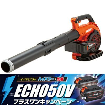 | プラスワンキャンペーン 今だけ!予備バッテリー付きモデルがお買い得。 期間限定2026年9月30日まで。 やまびこエコー「イナズマバリキ50V」シリーズから50Vハイパワーバッテリーブロワ登場。 バッテリー式だから「低振動」「低騒音」「排ガスゼロ」環境にやさしくストレスの少ないスマートな作業を実現します。 やまびこECHOオリジナル50Vリチウムイオンバッテリーを搭載。モーター駆動なので、「静粛性」「低振動」で作業者の負担を大幅に低減します。 また、50Vハイパワーバッテリーのパワーを余すことなくモーターに伝えることで、エンジンブロワ並みの「風量」「風速」を実現しました。 吸気には両面ファンを採用することで衣類の吸い付きによる送風ロスを低減します。また、不等ピッチファンにより、低騒音を実現しました。 モーターの設計を見直すことで、従来機比800gの軽量化を実現。ボディ形状を対称デザインとすることで、手首への負担を軽減し、また、コンパクトなボディとなりました。 BPB510にはブーストモードを追加。瞬間的に最大風速79.5m/s、風量13.3m3/min。地面に張り付いた落ち葉も吹き飛ばします。 |