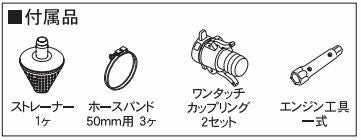 ストレーナー 1ケ ホースバンド 50mm 3ヶ ワンタッチカップリング 2ヶ エンジン工具 一式 |