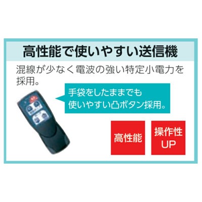手袋をはめても押しやすい凸ボタン式のラジコンチャンネルで、本機から離れた場所でも簡単に操作ができます。