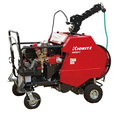 自走式ラジコン動噴 WGR617F-13A ラジコン動噴は、機械に張り付かずにいろいろな操作が出来て、防除に集中できます。 セルエンジンスタート・アシストホース繰り出しなど充実装備の上級機です。 エンジン始動・停止・ホース繰り出し・巻取り・ポンプON/OFFがリモコンで出来る5chラジコンです。 カバー類は工具無しで開けますのでメンテが楽です。 ホース繰り出しアシスト切替付 |