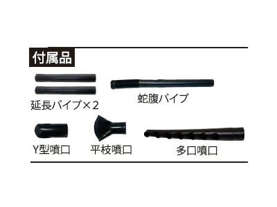 付属品 蛇腹パイプ、延長パイプ×2、Y形噴口、平枝噴口、多口噴口