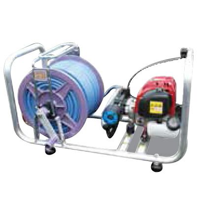 ●コンパクトなアルミフレームに巻車をセット。トラックの荷台に乗せての防除作業ができます。