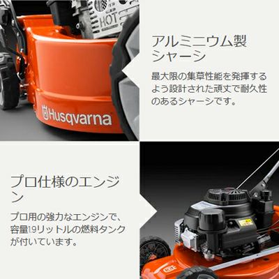 パワフルなエンジン、大型の燃料タンク、アルミホイール付ゴム製タイヤを装備した、軽量でコンパクトながら耐久性の高いエンジン自走式ローンモア。 【プレミア保証プラス付き】 ハスクバーナ エンジン式芝刈機 LC551VBP【自走式】【刈幅:510mm】【ロータリー式】【芝刈り機】【芝生】