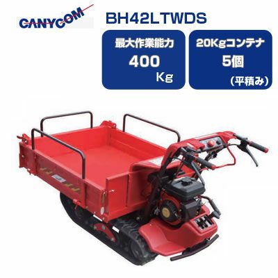 | セルスタータ式!リチウムイオンバッテリ搭載の自己充電型エンジン! ●前ミッション 前ミッション方式により車体の前後バランスが良く、また立ち乗りにより前方視認性も高く、安心して走行できます。 ●ナ・ガ・ラミッション 最高速度は5.0kmながら、最低速度は0.25km(ハーフスロットル時)と超低速走行が可能ですので、狭い所でも安心して作業が行えます。 ●充実の足回り 低振動の芯金なしクローラに加えて、スイング転輪を標準で装備。凹凸路面での段差乗り越え時のショックをやわらげます。 ●可変ハンドル ハンドルの切り替えが3段階調整でき、オぺレータの身長に合わせた切り替えが可能です。 ●ロックンロールつばさ 側板に六角支点機能を採用。これにより側板の水平ロックが可能となり、荷台をより広く多目的に活用できます。 ●手動ダンプ |