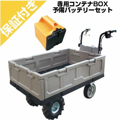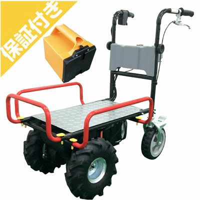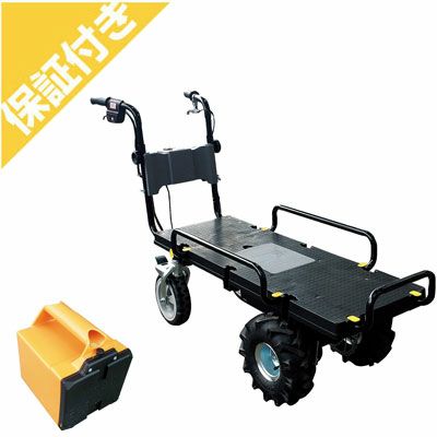 ボディサイズはコンパクトですが、最大作業能力は300kg、20kgコンテナを最大4個平積みで運ぶ事ができます。 スライド式荷台やダンプ機能、振動を抑える為に、低振動クローラや可動転輪を採用する等、お値段から考えると、コストパフォーマンスが高い仕上がりになっています。 グリップを握ったまま、親指で走行クラッチを切れる等、安全面の配慮もあって使いやすい運搬車です!