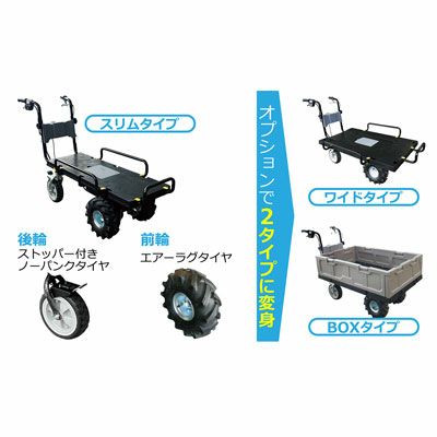 動力運搬車にはエンジン式動力運搬車と電動式運搬車があります。なお、荷台の機能は手動ダンプ、油圧ダンプ、リフト式などがあります。