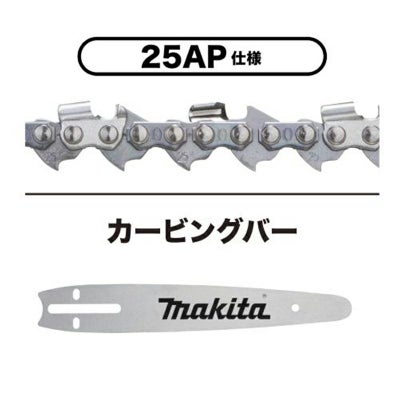 非常に軽く滑らかな切れ味を持つオレゴン25APチェーンとキックバックが起こりにくい10インチ(25cm)のカービングバーの組み合わせとなります。