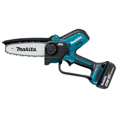 ソーチェンはマキタオリジナルのM11チェン、ピッチが細かく滑らかで切り口が綺麗。竹の切断も可能です。ガイドバーは150mm、取り回しに優れ小枝等の剪定作業に最適です。