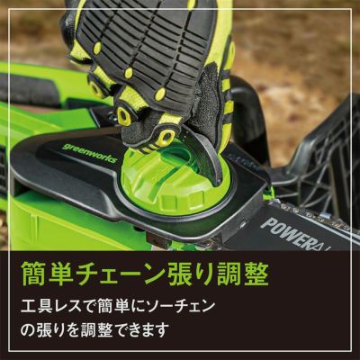 ・メンテナンスフリーなブラシレスモーター・チェン張り調整はダイヤルを回すだけ・オイルの自動給油でカットパフォーマンスを保つ