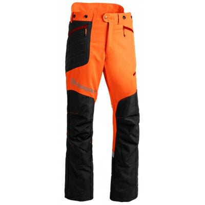 | B&Tズボンテクニカルは長時間作業を行うプロ用のズボンです。 蛍光オレンジの配色と反射材(大腿部ロゴ・ふくらはぎ部)で天候の悪い日や日暮れ時にも高い視認性を確保します。 ズボン前面・サイド・裾部分は撥水素材、後ろ側は薄手のストレッチ素材で動きやすさと快適性に優れ、裾口の広さをスナップボタンで調整できるので刈草やゴミの侵入を防ぎます。 脚の後ろにあるベンチレーションジッパーは、温度を快適なレベルに保ちます。 |