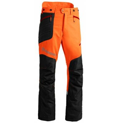 | B&Tズボンテクニカルは長時間作業を行うプロ用のズボンです。 蛍光オレンジの配色と反射材(大腿部ロゴ・ふくらはぎ部)で天候の悪い日や日暮れ時にも高い視認性を確保します。 ズボン前面・サイド・裾部分は撥水素材、後ろ側は薄手のストレッチ素材で動きやすさと快適性に優れ、裾口の広さをスナップボタンで調整できるので刈草やゴミの侵入を防ぎます。 脚の後ろにあるベンチレーションジッパーは、温度を快適なレベルに保ちます。 |