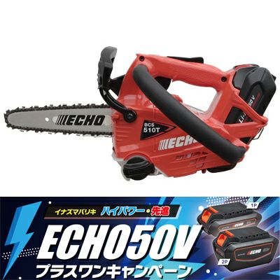 | プラスワンキャンペーン 今だけ!予備バッテリー付きモデルがお買い得。 期間限定2026年9月30日まで。 軽量&高出力。チェンソーメーカーが作ったバッテリートップハンドルチェンソー、BCS510T誕生。 各社がしのぎを削るバッテリーチェンソー市場において、他社メーカーに遅れを取っていたやまびこのエコーブランドから待望のトップハンドルチェンソーが発売されました。 バッテリー式だから「低振動」「低騒音」「排ガスゼロ」環境にやさしくストレスの少ないスマートな作業を実現します。 バッテリー装備状態でも、質量は2.7kg(※バーチェン除く)と徹底的な軽量化に加え、同社のエンジン式トップハンドルにも引けを取らないパワー、息継ぎの無いトルクフルな鋸断性能を持つBCS510Tシリーズ。 ハンドルレイアウトは枝打ち作業に便利な後傾リアハンドルレイアウトを採用、優れた重量バランスのおかげで、取り回し性も良く樹上作業も快適に行えます。 モーター冷却風取り込み口には粉塵の進入を防止する取り外し可能なフィルターを採用、モーターの状態を最適に保ちます。 他にも、チェン交換やチェンの張り調整時に便利なサイドアジャスター式チェンテンショナー、ナット脱落防止機構、リフティングフック部にはやまびこエコーオリジナルの「クイックドローシステム」を採用するなど、プロ用チェンソーを作り続けているやまびこならではの技術も満載。「プロ用」として、しっかり使えるバッテリーチェンソーとして仕上がっています。 キックバックへの対策には慣性作動式チェンブレーキを標準搭載、安全性にも考慮しています。 同じ50Vシリーズの刈払機やヘッジトリマーに使用できる共通バッテリーを採用しているので複数の機種に利用でき、無駄がありません。 非常に軽く滑らかな切れ味を持つ25APチェーンと8インチ(20cm)のカービングバーの組み合わせとなります 住宅街や公園での選定作業、庭や畑の果樹の剪定などあらゆるシーンで活躍します。2台目のセカンドソーとしてもおススメのチェンソーです。 オプションのスパイクバンパーが付いたセットになります。 ※スパイクバンパーのお取り付けはお客様で行っていただく必要がございます。 ※チェンソーの雨天時ご使用は推奨しておりません。 クイックドローシステムのご紹介はこちら↓ |