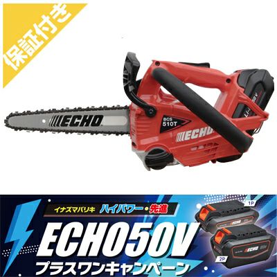 | プラスワンキャンペーン 今だけ!予備バッテリー付きモデルがお買い得。 期間限定2026年9月30日まで。 軽量&高出力。チェンソーメーカーが作ったバッテリートップハンドルチェンソー、BCS510T誕生。 各社がしのぎを削るバッテリーチェンソー市場において、他社メーカーに遅れを取っていたやまびこのエコーブランドから待望のトップハンドルチェンソーが発売されました。 バッテリー式だから「低振動」「低騒音」「排ガスゼロ」環境にやさしくストレスの少ないスマートな作業を実現します。 バッテリー装備状態でも、質量は2.7kg(※バーチェン除く)と徹底的な軽量化に加え、同社のエンジン式トップハンドルにも引けを取らないパワー、息継ぎの無いトルクフルな鋸断性能を持つBCS510Tシリーズ。 ハンドルレイアウトは枝打ち作業に便利な後傾リアハンドルレイアウトを採用、優れた重量バランスのおかげで、取り回し性も良く樹上作業も快適に行えます。 モーター冷却風取り込み口には粉塵の進入を防止する取り外し可能なフィルターを採用、モーターの状態を最適に保ちます。 他にも、チェン交換やチェンの張り調整時に便利なサイドアジャスター式チェンテンショナー、ナット脱落防止機構、リフティングフック部にはやまびこエコーオリジナルの「クイックドローシステム」を採用するなど、プロ用チェンソーを作り続けているやまびこならではの技術も満載。「プロ用」として、しっかり使えるバッテリーチェンソーとして仕上がっています。 キックバックへの対策には慣性作動式チェンブレーキを標準搭載、安全性にも考慮しています。 同じ50Vシリーズの刈払機やヘッジトリマーに使用できる共通バッテリーを採用しているので複数の機種に利用でき、無駄がありません。 非常に軽く滑らかな切れ味を持つ25APチェーンと10インチ(25cm)のカービングバーの組み合わせとなります 住宅街や公園での選定作業、庭や畑の果樹の剪定などあらゆるシーンで活躍します。2台目のセカンドソーとしてもおススメのチェンソーです。 オプションのスパイクバンパーが付いたセットになります。 ※スパイクバンパーのお取り付けはお客様で行っていただく必要がございます。 ※チェンソーの雨天時ご使用は推奨しておりません。 クイックドローシステムのご紹介はこちら↓ |