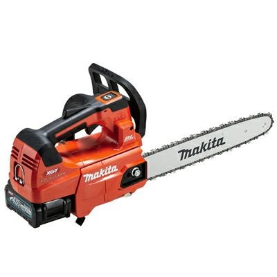| ●エンジン式30mLクラス 充電式最速のチェーンスピード、24.8m/秒。太径の切断から枝打ち・高所作業等、軽快に切断可能。 ●ハイパワーブラシレスモータ搭載 高出力・高耐久・メンテナンスフリー。 ●連続重負荷作業に対応 モータがチェーンを直接駆動、ダイレクトドライブ。モータとコントローラを強制冷却、ヒートシンク付コントローラ。 ●クラス最軽量 エンジン式と比べて-0.3kg軽量(MUC009GD3の場合)。長時間作業でも疲れにくい。 ※30mLクラスプロ向け同出力帯チェンソーにおいて。2021年10月現在、当社調べ。バッテリBL4025含む。ガイドバー、チェーン刃、チェーンオイル含まず。 ●高い防水性能 雨の中でも運転可能な防水設計、防滴・防じん「ウェットガード」&防水保護等級「IPX4」により実現。 ●刃物部仕様 チェーン刃25AP仕様。刃数が多く、軽い滑らかな切れ味。ゲージ厚1.3mm、ピッチ:1/4”。 ●排出口の大型化で、切粉の排出性向上 チェーン周辺のクリアランスを確保することで、切粉が詰まりにくい。 ●最適重心バランス&軽い取り回し 重心をハンドル下の本機中心部に設定することで、あらゆる方向へ自由自在に操作しやすい。 ●「収納式」大口径オイルタンクキャップ 枝の引っ掛かりを低減。大型化で給油がラク。 ●ワンタッチで電源ON 充電式だから始動がラク。 ●脱落防止ナット ナットがカバーから脱落しないため、不意な紛失を防止。 ●吊り下げ用フック ガイドバーが下を向き、スムーズに吊り下げ可能。 |