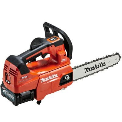 | ●エンジン式30mLクラス 充電式最速のチェーンスピード、24.8m/秒。太径の切断から枝打ち・高所作業等、軽快に切断可能。 ●ハイパワーブラシレスモータ搭載 高出力・高耐久・メンテナンスフリー。 ●連続重負荷作業に対応 モータがチェーンを直接駆動、ダイレクトドライブ。モータとコントローラを強制冷却、ヒートシンク付コントローラ。 ●クラス最軽量 エンジン式と比べて-0.3kg軽量(MUC009GD3の場合)。長時間作業でも疲れにくい。 ※30mLクラスプロ向け同出力帯チェンソーにおいて。2021年10月現在、当社調べ。バッテリBL4025含む。ガイドバー、チェーン刃、チェーンオイル含まず。 ●高い防水性能 雨の中でも運転可能な防水設計、防滴・防じん「ウェットガード」&防水保護等級「IPX4」により実現。 ●刃物部仕様 チェーン刃25AP仕様。刃数が多く、軽い滑らかな切れ味。ゲージ厚1.3mm、ピッチ:1/4”。 ●排出口の大型化で、切粉の排出性向上 チェーン周辺のクリアランスを確保することで、切粉が詰まりにくい。 ●最適重心バランス&軽い取り回し 重心をハンドル下の本機中心部に設定することで、あらゆる方向へ自由自在に操作しやすい。 ●「収納式」大口径オイルタンクキャップ 枝の引っ掛かりを低減。大型化で給油がラク。 ●ワンタッチで電源ON 充電式だから始動がラク。 ●脱落防止ナット ナットがカバーから脱落しないため、不意な紛失を防止。 ●吊り下げ用フック ガイドバーが下を向き、スムーズに吊り下げ可能。 |