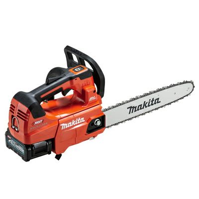 | ●エンジン式30mLクラス 充電式最速のチェーンスピード、24.8m/秒。太径の切断から枝打ち・高所作業等、軽快に切断可能。 ●ハイパワーブラシレスモータ搭載 高出力・高耐久・メンテナンスフリー。 ●連続重負荷作業に対応 モータがチェーンを直接駆動、ダイレクトドライブ。モータとコントローラを強制冷却、ヒートシンク付コントローラ。 ●クラス最軽量 エンジン式と比べて-0.3kg軽量(MUC009GD3の場合)。長時間作業でも疲れにくい。 ※30mLクラスプロ向け同出力帯チェンソーにおいて。2021年10月現在、当社調べ。バッテリBL4025含む。ガイドバー、チェーン刃、チェーンオイル含まず。 ●高い防水性能 雨の中でも運転可能な防水設計、防滴・防じん「ウェットガード」&防水保護等級「IPX4」により実現。 ●刃物部仕様 チェーン刃25AP仕様。刃数が多く、軽い滑らかな切れ味。ゲージ厚1.3mm、ピッチ:1/4”。 ●排出口の大型化で、切粉の排出性向上 チェーン周辺のクリアランスを確保することで、切粉が詰まりにくい。 ●最適重心バランス&軽い取り回し 重心をハンドル下の本機中心部に設定することで、あらゆる方向へ自由自在に操作しやすい。 ●「収納式」大口径オイルタンクキャップ 枝の引っ掛かりを低減。大型化で給油がラク。 ●ワンタッチで電源ON 充電式だから始動がラク。 ●脱落防止ナット ナットがカバーから脱落しないため、不意な紛失を防止。 ●吊り下げ用フック ガイドバーが下を向き、スムーズに吊り下げ可能。 |