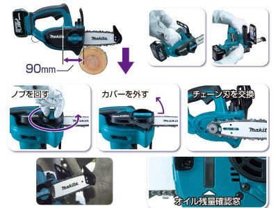 | 質量 | 2.5kg(チェーン刃、ガイドバー、バッテリ部含む) |