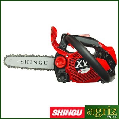 | 「研ぎ澄まされたデザイン」新宮よりXV250TD発売です。 不要な部分を限界までそぎ落とし、極限まで小型化された無駄のないカタチ。他社モデルと比較しても圧倒的に軽い2.3kgの軽量ボディとコンパクトながらパワフルなエンジンを搭載したトップハンドルチェンソーです。 エンジンをボディ下部に配置することで低重心化し、握りやすいグリップ周りのスペースを確保。また、ハンドルグリップも重心に近づける様にレイアウトすることで、バランスが良く取り扱いがし易い形状となっています。 燃料給油口は、注ぎやすい大口径キャップを採用。手早く給油するときでも、燃料がこぼれにくいので、公園などの公共施設の管理でも周囲を汚さず快適に作業できます。キックバックへの対策として、『慣性式チェンブレーキ』を標準搭載。安全に関しても抜かりはありません。 エンジン始動を楽にする、オートリターンチョークや軽-1スタート、枝打ち作業に便利な後傾リアハンドルや必要な時に素早く取り出せるリフティングフック、チェン交換やチェンの張り調整時に便利なサイドアジャスター式チェンテンショナーやナット脱落防止機構、清掃に便利なナイロンメッシュクリーナー、なども標準装備されています。 非常に軽く滑らかな切れ味を持つ25APチェーンと8インチ(20cm)のスプロケットノーズバーの組み合わせとなります。薪作りから果樹の剪定、森林の枝打ちに至るまであらゆるシーンで活躍します。2台目のセカンドソーとしてもおススメのチェンソーです。 |