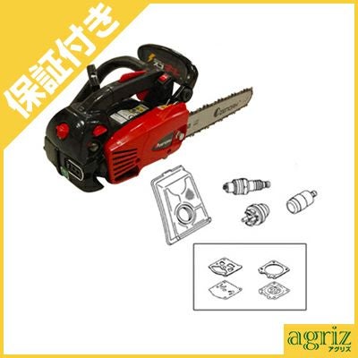 ~セット内容~ ゼノア G2200T-10PH00×1台 純正プラグ×1個 エアエレメント×1個 フィルタアッセン×1個 フライマリポンプアッセン×1個 ダイヤフラム・ガスケットキット×1個 基本の消耗品に加え、キャブレターオーバーホール用キットと比較的傷みやすいフライマリポンプなどの消耗部品が付いた便利なセットです。 本格的なメンテナンスができますが、一定の修理技術を必要とします。 「世界一軽い。」と言われるだけでは物足りない、ゼノアのこがるminiスゴキレ誕生。 ハイブリッドエンジンケース方式(マグネシウムクランクケース)の採用と、クラッチの軽量化により、チェンブレーキ標準装備ながらクラス最軽量を実現していたG2000シリーズがモデルチェンジ。 排気デコンプ無しの高圧縮のエンジンを搭載した、パワー重視のモデルとなります。 給排気系を見直し、クラッチドラムを従来の8枚刃から7枚刃に変更することにより出力アップを図ることで回転が落ち難く粘り強さが向上。10インチバーにも十分対応が可能になりました。 このサイズでありながら装備も抜かりありません。 ハンドルとタンクの一体化しエンジン部と分離することで振動の伝わりを軽減、作業者の負担を軽減します。 また、新ダストフリーシステムの採用で、よりきれいな空気だけをキャブレタに供給することでエアクリーナーのメンテナンス頻度が下がります。 エアーフィルタの清掃も工具レスで手軽に出来るのでわずらわしい分解作業が必要ありません。 チェンブレーキももちろん標準装備です。 非常に軽く滑らかな切れ味を持つハスクバーナ純正25AP互換チェーンのH00チェーンと10インチ(25cm)のスプロケットノーズバーの組み合わせとなります。 軽さだけでなくパワーも追求したG2200T。コンパクト設計のため立ち木伐採のような作業は苦手ですが、直径20cm程度までの枝打ちや玉切り作業であれば上位クラスの機種と遜色なくお使いいただけます。 パワー重視のG2200Tであれば10インチバーでのご使用もOK。切断スピードを重視される方には8インチバー仕様をおすすめいたします。手軽に手鋸がわりに使える1台となっております。 |