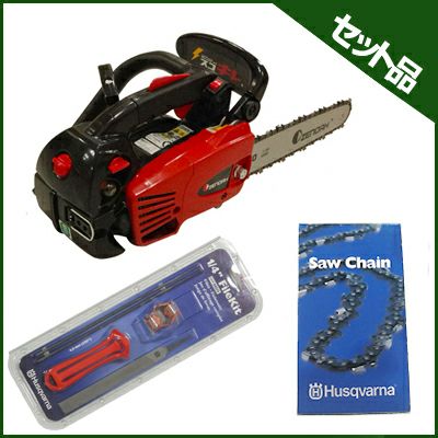 ~セット内容~ ゼノア G2200T-10PH00×1台 ハスクバーナ 目立てキット 25AP用(H00)×1個 ハスクバーナ ソーチェン H00[25AP]-60E ×1本 快適な作業はやはりきちんとした目立てから。 どんな高性能なチェンソーでも必ず目立ては必要になります。 目立て角度を決めやすい目立てホルダーとデブスケージが1つになったハスクバーナのコンビゲージと平ヤスリ・ヤスリハンドル、丸やすりがセットになった目立てキットに加え予備のソーチェン1本が付いた便利なセットです。 「世界一軽い。」と言われるだけでは物足りない、ゼノアのこがるminiスゴキレ誕生。 ハイブリッドエンジンケース方式(マグネシウムクランクケース)の採用と、クラッチの軽量化により、チェンブレーキ標準装備ながらクラス最軽量を実現していたG2000シリーズがモデルチェンジ。 排気デコンプ無しの高圧縮のエンジンを搭載した、パワー重視のモデルとなります。 給排気系を見直し、クラッチドラムを従来の8枚刃から7枚刃に変更することにより出力アップを図ることで回転が落ち難く粘り強さが向上。10インチバーにも十分対応が可能になりました。 このサイズでありながら装備も抜かりありません。 ハンドルとタンクの一体化しエンジン部と分離することで振動の伝わりを軽減、作業者の負担を軽減します。 また、新ダストフリーシステムの採用で、よりきれいな空気だけをキャブレタに供給することでエアクリーナーのメンテナンス頻度が下がります。 エアーフィルタの清掃も工具レスで手軽に出来るのでわずらわしい分解作業が必要ありません。 チェンブレーキももちろん標準装備です。 非常に軽く滑らかな切れ味を持つハスクバーナ純正25AP互換チェーンのH00チェーンと10インチ(25cm)のスプロケットノーズバーの組み合わせとなります。 軽さだけでなくパワーも追求したG2200T。コンパクト設計のため立ち木伐採のような作業は苦手ですが、直径20cm程度までの枝打ちや玉切り作業であれば上位クラスの機種と遜色なくお使いいただけます。 パワー重視のG2200Tであれば10インチバーでのご使用もOK。切断スピードを重視される方には8インチバー仕様をおすすめいたします。 手軽に手鋸がわりに使える1台となっております。 |
