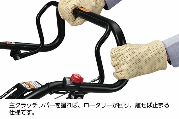 | ハイパワーで上質な仕上がりを。 デフ付 リアロータリー式 直進性に優れ、パワフルに土を細かく砕いて、プロ顔負けの仕上がり。 ●耕うんラクラク、前進スムーズ 〈同軸・同時〉正逆転ロータリーの採用により、爪が土にしっかり食い込み、機体の飛び出しが少なく安定して耕うん。土だまりをつくらず美しく仕上げます。 ●土を格納して細かく粉砕 耕うん爪を覆うカバーの中に土を格納してかき回し、きめ細やかな土に仕上げます。 ●作業中、足もと安心 人と耕うん爪の間にリアシールドを装着することで作業も安心。さらに、耕うんした土を平らに整地します。 ●扱いやすさに配慮したハンドル周り 安心設計のクラッチレバーをはじめ、ハンドルを握ったままクラッチレバーの操作が可能なループハンドル、直進・旋回を快適に行うデフロック機構を採用。 ●移動も駐車もラクラク 大型タイヤで軽快に移動。FU655は、レバー1本でタイヤをロックする駐車ブレーキ付。 |