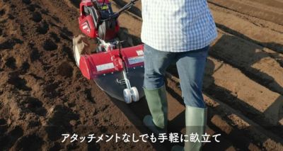 | 【作業がはかどる196cm3大排気量エンジン】 パワフルな耕うんを実現する大排気量エンジンを搭載。エンジン排気量196cm3。 【リアシールドを利用した簡易畝立て】 別売の培土器を装着しなくても、標準装備のリアシールドを利用した簡易畝立てが可能。 【仕上がりがキレイ】 カバーの中で土を攪拌することで、きめ細かな土になり、同時に整地も行えます。 【55cmの広い耕幅】 耕うん幅が55cmと幅広く耕すことができるので、広い畑でも短時間で作業できます。 【4段階で耕深が選べる】 最大耕深目安は17cm。耕うん深さは尾ソリの上下調節で行います。 【ダッシングを抑制する抵抗板】 ロータリーカバー下の抵抗板が、機体の不意な飛び出しを抑制。耕うん開始時や固い畑でも安心して作業できます。 【その場耕うん】 「その場耕うん」はその場に留まったまま耕うんできます。耕し始めや畑の隅にも便利です。 【簡単にハンドル高さ調節】 手元のレバーでロックを解除。使用する人の体格や作業にあわせて、簡単に上下4段階に調節できます。 【握り位置を自由に選べるループハンドル】 手のはさまりを防止する補助バーを採用。クラッチレバーを握ると耕うん、放せば止まる安心設計。 【視認性の高いエンジンスイッチ】 視認性の高いエンジンスイッチ。緊急時はワンタッチでエンジンが停止します。 【デフロックの切り替えで直進も旋回もラクラク】 デフロックレバーの操作で安定した直進とスムーズな旋回の切り替えが可能。 【選べる2段階の作業速度】 用途に合わせて2段階の速度が選べ、効率的な耕うん作業が行えます。 |