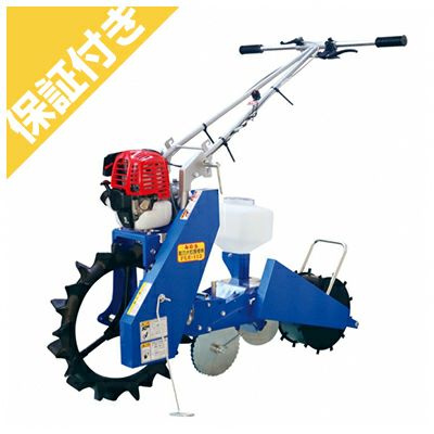 4サイクルガソリンエンジンを搭載した自走式大粒播種機 ●一工程で作溝・播種・覆土ができます。 ●スプロケット・チェンを交換すれば、株間の調節ができます。 ●目皿を交換することで大豆・コーン・麦の播種粒数を変更することが可能です。 ●自走式のため楽に作業が行えます。 ●ハンドルはスライド式のため、体系に合わせて作業が行えます。 |
