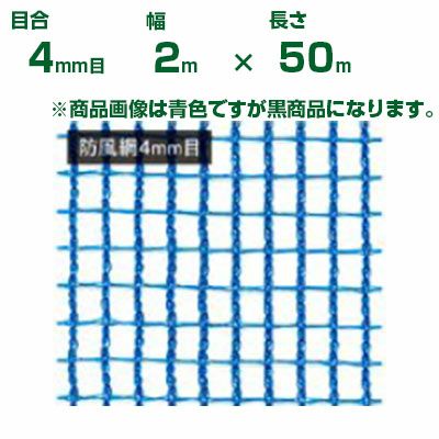 日本マタイ ラッセル防風網 黒 4mm目 2.0×50m 遮光率:34%