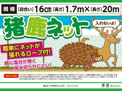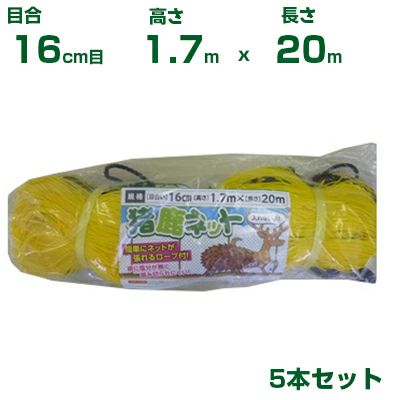 まとめ買いがお得なアグリズの農業・園芸資材! シンセイ 猪鹿ネット 16cm目 1.7m×20m (張ロープ手編仕様) 5枚セット (農業資材)(アニマルネット)(防獣ネット)(イノシシ)(シカ)(170cm)