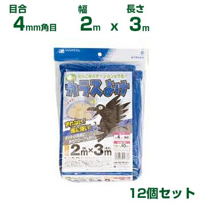 日本マタイ 噂のカラスよけ 青 4mm角目 2×3m 周囲おもりロープ入り 12個セット