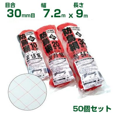 日本マタイ 防鳥網 400d オレンジ 30mm目 20坪 (7.2×9m) 張りひも付 50個セット