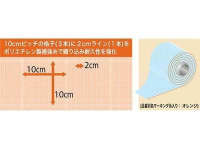 ポリエチレン製補強糸(10cm格子・2cmライン)で耐久性を発揮。
