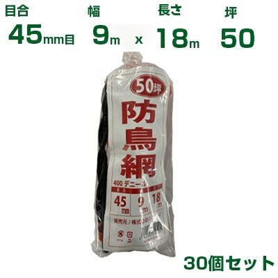 シンセイ 防鳥網 400D 45mm目 50坪 9x18m 30個セット(防鳥ネット)(鳥害対策)(鳩)(カラス)(防鳥網)(農業用)(園芸用)(農業資材)(家庭菜園)
