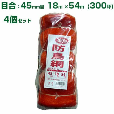 シンセイ 防鳥網 400D 45mm目 300坪 18x54m 4個セット(防鳥ネット)(鳥害対策)(鳩)(カラス)(防鳥網)(農業用)(園芸用)(農業資材)(家庭菜園)