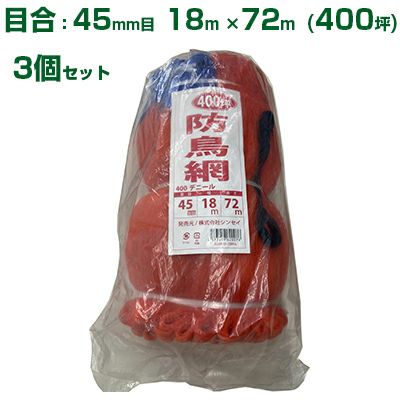 シンセイ 防鳥網 400D 45mm目 400坪 オレンジ 18x72m 3個セット(防鳥ネット)(鳥害対策)(鳩)(カラス)(防鳥網)(農業用)(園芸用)(農業資材)(家庭菜園)