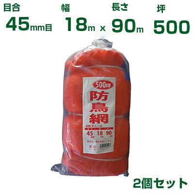 シンセイ 防鳥網 400D 45mm目 500坪 オレンジ 18x90m 2個セット(防鳥ネット)(鳥害対策)(鳩)(カラス)(防鳥網)(農業用)(園芸用)(農業資材)(家庭菜園)