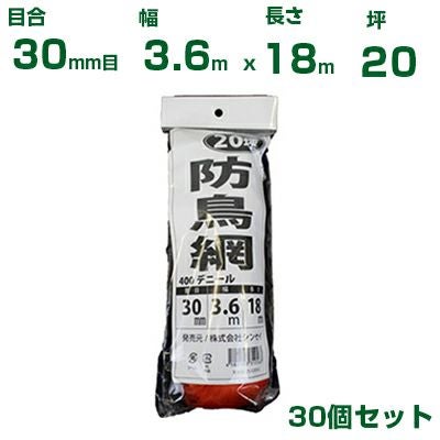 シンセイ 防鳥網 (オレンジ) 3.6X18m 目合30mm (ヘッダ付袋) 30個セット(防鳥ネット)(鳥害対策)(鳩)(カラス)(防鳥網)(農業用)(園芸用)(農業資材)(家庭菜園)