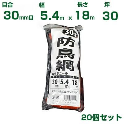 シンセイ 防鳥網 (オレンジ) 5.4X18m 目合30mm (ヘッダ付袋) 20個セット(防鳥ネット)(鳥害対策)(鳩)(カラス)(防鳥網)(農業用)(園芸用)(農業資材)(家庭菜園)